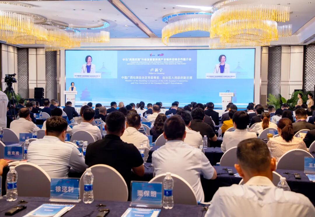 9月18日,中马“两国双园”升级发展暨跨境产业链供应链合作推介会在南宁举行。自治区党委常委、自治区副主席卢新宁,马来西亚投资、贸易和工业部代表、马来西亚驻华大使馆经济事务公使悟倪·桑卡尔,中国工商银行股份有限公司副行长张守川,中国驻马来西亚大使馆经济商务处公使衔参赞孙淑强,马来西亚种植与原产业部副秘书长莎利法·阿德丽娜博士出席推介会并致辞。钦州市委书记、中马钦州产业园区党工委书记钟畅姿主持致辞环节。自贸开投集团党委书记、董事长林继培,集团党委副书记、副董事长、总经理曾凡峻参加会议。