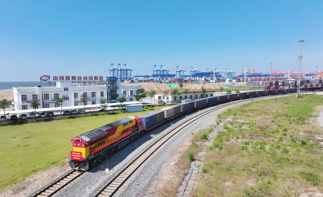 一趟西部陆海新通道海铁联运专列从钦州港开出。