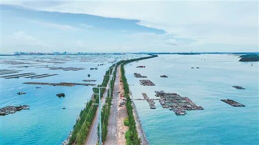 它是网上热门的宝藏风景,是为保护中华白海豚划下的绿色生态线,也是向蓝色深海延伸的发展大通道——它就是被称为“广西最美海上公路”的钦州三墩公路。