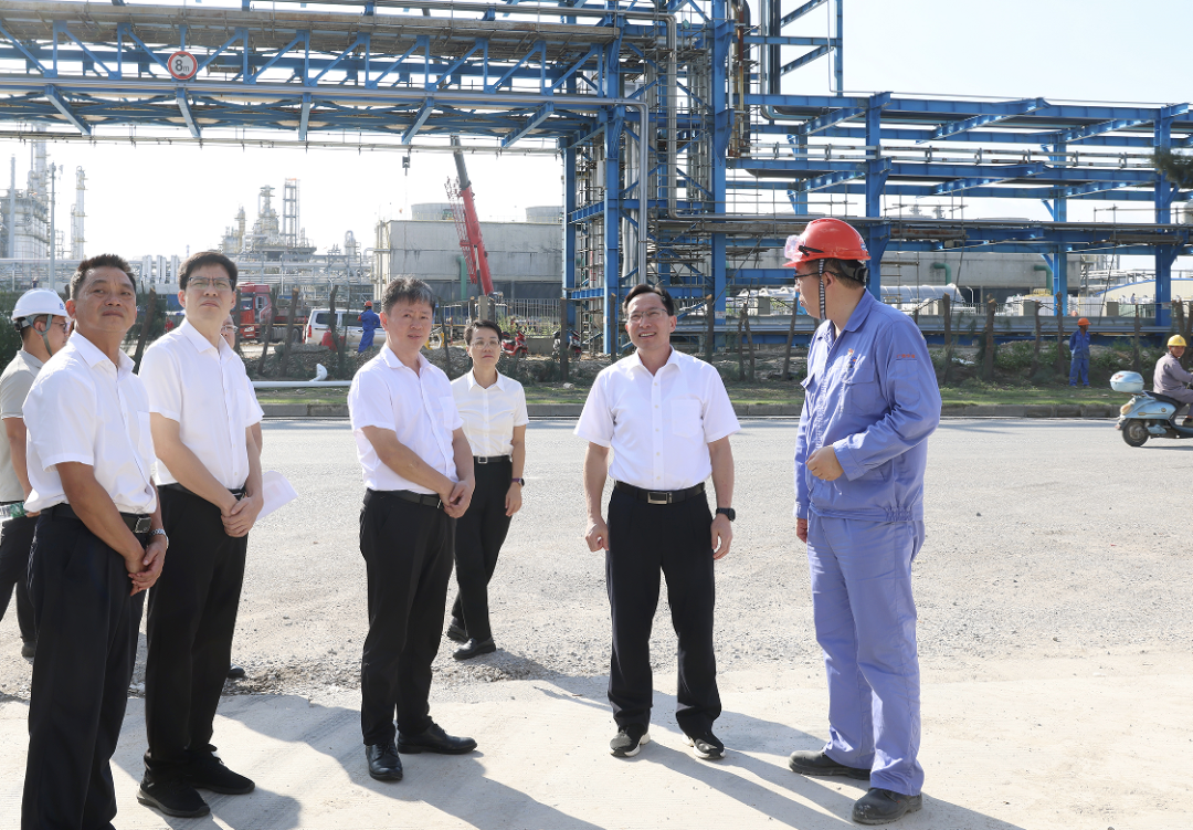 毛任建(右二)在华谊新材料32万吨/年丁辛醇及丙烯酸酯项目调研。