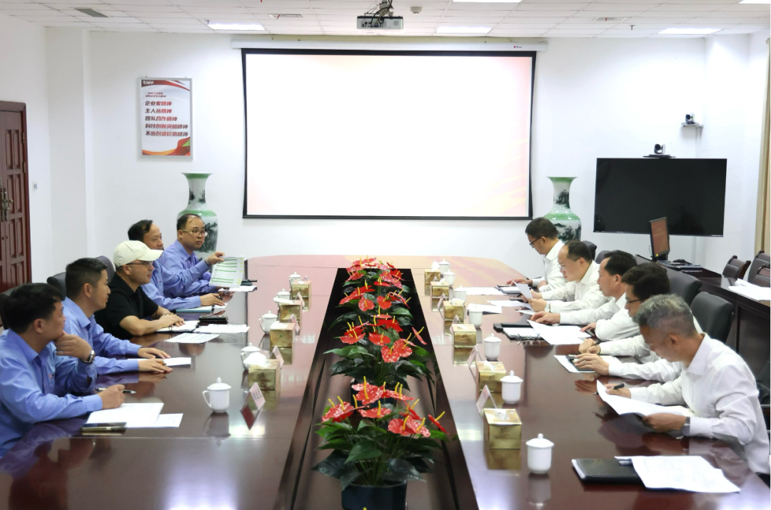 毛任建(右三)在广西金桂浆纸业有限公司座谈交流。
