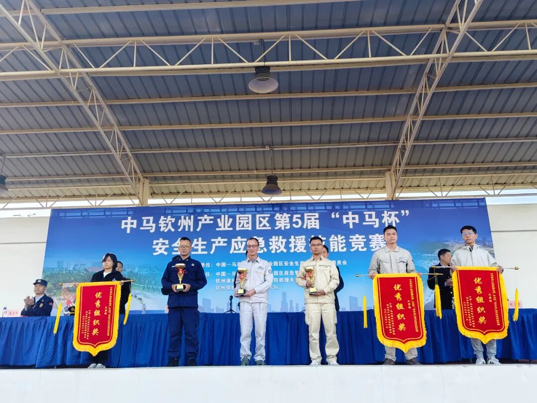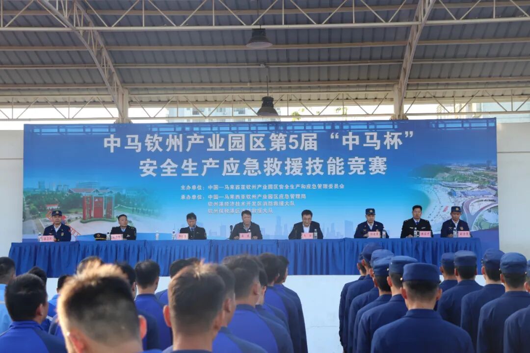 11月21日,中马钦州产业园区第五届“中马杯”安全生产应急救援技能竞赛颁奖仪式在北部湾危险化学品救援基地举行。本次竞赛由中马钦州产业园区管委会主办,自治区应急管理厅指导,集结危化组与工贸组共25支专业队伍同台竞技,以“以练为战、以战促安”为实战导向,全面检验园区各支企业应急救援队伍的应急处置、救援能力。中马钦州产业园区管委会副主任梁庆、自治区应急救援中心主任刘松出席仪式并致辞。