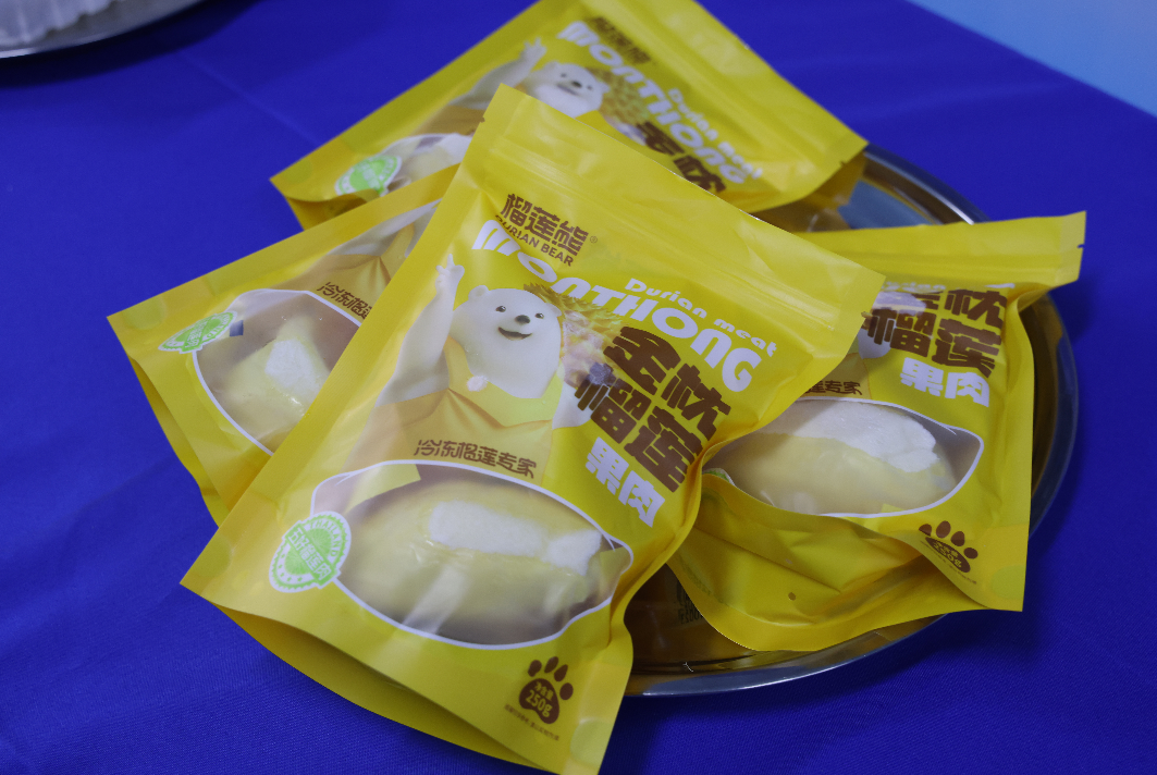 此柜冷冻榴莲进入广西嘉荣食品科技有限公司生产车间后,将生产成带壳切片榴莲、冷冻榴莲肉、榴莲冻干及榴莲泥等多类深加工产品销往全国各地,产品冠名“榴莲熊”自有品牌。该公司总投资3000万元建设的国内首个榴莲全产业链智能化工厂,通过集成全球领先的AI高光谱智能糖选、-195℃液氮急速冷冻及FD冻干等技术,实现了对榴莲糖度、成熟度的无损精准检测和对榴莲品质的标准化、可控化生产,彻底改变了传统榴莲加工依赖人工分选、品质不均的行业痛点,从源头保障产品品质。