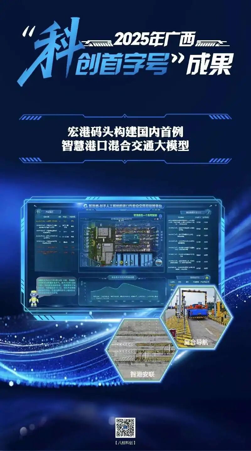 近日,2025年广西科技创新“首字号”重大成果正式发布,共20项填补国内空白、突破国际垄断的技术成果集中亮相。其中,中马钦州产业园区有两项重大创新成果入选,分别是:广西钦州保税港区宏港码头有限公司构建的国内首例智慧港口混合交通大模型、国投钦州第二发电有限公司等创制的国内首套消能中压柔性灵活调节阀组。广西钦州保税港区宏港码头有限公司成功构建国内首例智慧港口混合交通大模型,并自主研发基于人工智能的港口作业安全风险管控平台——“智港盾”。该平台是全国首例专为港口全域场景设计的多模态安全生产垂直领域大模型,有效破解传统人工巡检覆盖低、数据分散等长期制约港口安全生产的“卡脖子”难题,实现“人、机、环、管”全流程数字化管控,推动监管覆盖率提升至95%,安全隐患数量直降50%,标志着我国港口安全生产管理迈向智慧化新阶段。该成果已在第22届中国—东盟博览会“中国—东盟消防人工智能科技设备展”中展出,并入选中国港口协会“平安港口”案例,为行业数字化转型提供了“广西方案”。由国投钦州第二发电有限公司等单位联合攻关,成功创制国内首套消能中压柔性灵活调节阀组。该团队创新研发出中压柔性灵活调节阀技术与机组深度调峰的协同控制方案,研制出国内首套带消能装置的中压柔性灵活调节阀组,配套单机压力4.5兆帕、额定抽汽470吨/小时(最大840吨/小时)的660兆瓦成套超临界汽轮机装备。该技术可实现机组在低负荷运行时的高参数、大流量稳定抽气,有力支撑机组宽负荷高效灵活运行,对提升电网调节能力、保障能源安全稳定供应具有重要战略意义。这两项成果的涌现,是园区创新生态持续优化的生动体现。中马钦州产业园区作为国家级开放合作平台,始终坚持将科技创新摆在发展全局的核心位置,聚焦关键领域组织攻关,成功推动一批高质量成果转化落地,为区域产业升级与高质量发展注入强劲动力。