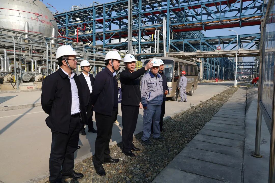 毛任建(左四)在恒逸新材料有限公司开展春节期间安全生产检查。