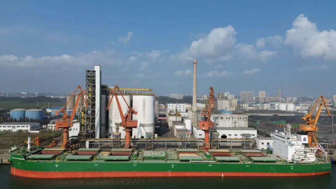 满载大豆的巨轮靠泊中粮油脂(钦州)有限公司配套码头。