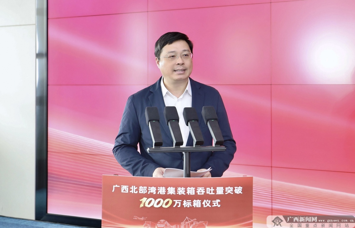 韦韬代表自治区党委、政府向北部湾港以及港口建设者、运营者们表示诚挚祝贺,向关心支持广西发展和北部湾港建设的国家部委、中央企业、兄弟省份等表示衷心感谢。他指出,加快建设西部陆海新通道是习近平总书记亲自谋划、亲自部署、亲自推动的重大战略。近年来,广西牢记嘱托、感恩奋进,主动对接国家重大战略,充分发挥自身优势,推动高水平共建西部陆海新通道不断取得新进展。当前,广西正迎来历史最好发展时期,高质量发展其时已至、其势渐成、其兴可待,将持续实施向海图强战略,以北部湾港为海陆门户,以平陆运河经济带为重要纽带,以西部陆海新通道为战略牵引,推动更多资源和产业向通道沿线集聚;持续推进基础设施建设,提升物流服务质效,增加重箱外贸箱比重、开通更多新航线;促进通道产业融合发展,深化省际协商共建,持续扩大对内对外开放,共同开拓广阔东盟市场,让通道更畅、产业更兴、开放更活。