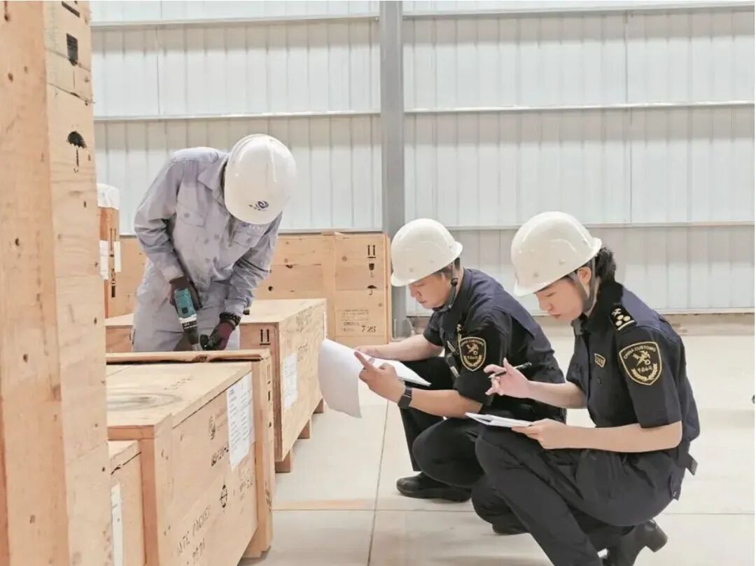 钦州海关关员对进口成套设备开展开箱验收监管。