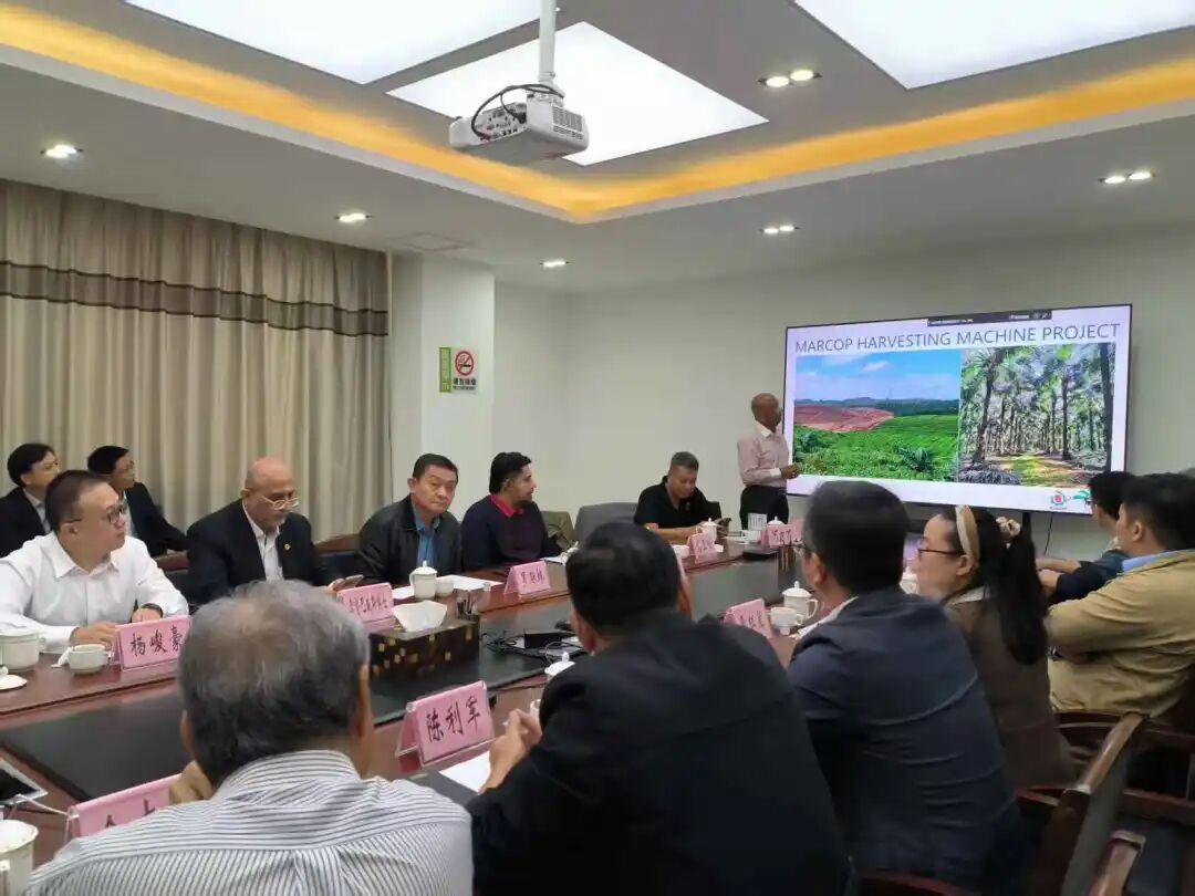 海南油棕研究中心组织了交流会,会上马来西亚油棕机械化与自动化研究联盟主席罗斯林介绍此次来访目的,随后马来西亚棕榈油总署团队重点介绍了马来西亚油棕园对采摘设备的市场需求,包括设备性能、功能设计、关键部件等方面的具体需求及技术建议,强调希望逐步推动设备自动化、智能化升级,促进棕榈园种植效率提升与行业可持续发展。