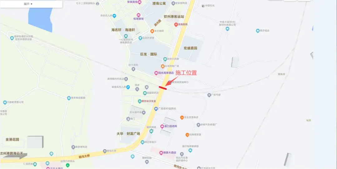 第二步:封闭钦州港进港大道(钦州港往勒沟作业区左侧,既有道口10米)进行施工作业。